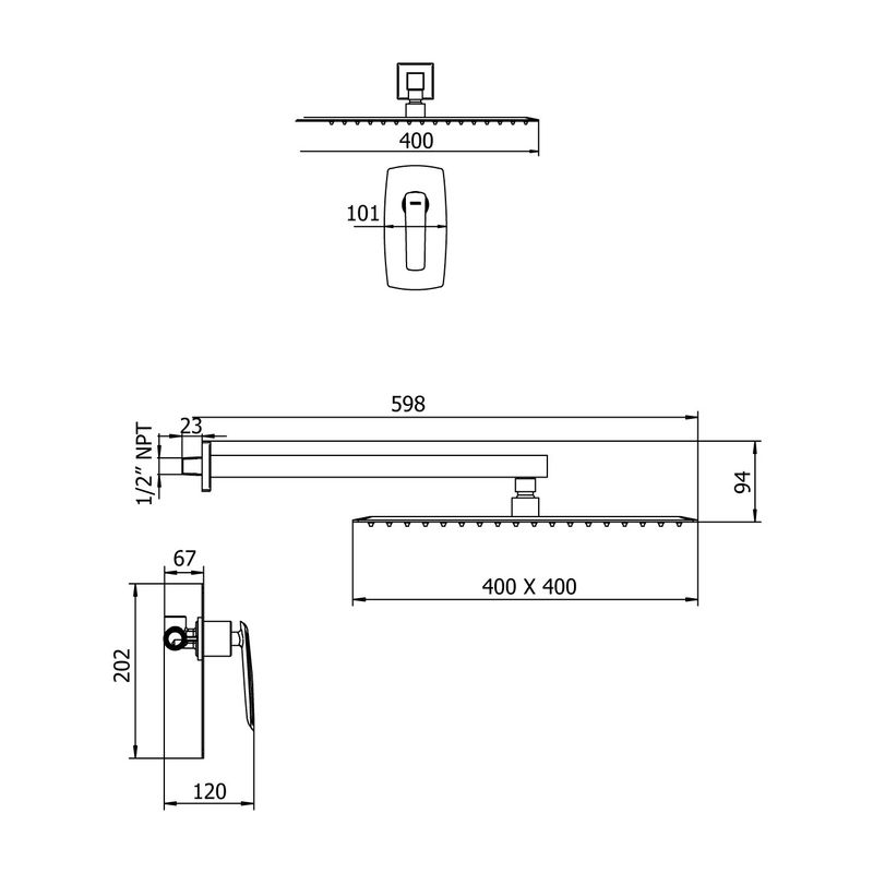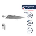 CARACTERISTICAS | ✅ Cuerpo de bronce y acero inoxidable. ✅ Cartucho cerámico de 35 mm. ✅ Ducha española cuadrada de 40 cm. ✅ Diseño elegante y duradero. |
