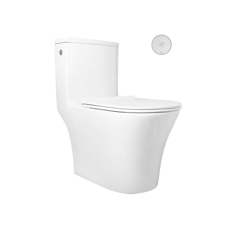 CARACTERISTICAS | » Válvula de llenado R&T electrónico 3" » Arrastre de hasta 950 gr. » Fabricado en loza vitrificada. » Asiento de melamine con caída lenta que evita golpes y daños. » Incluye pulsador circular cromado simple y sensor de movimiento. » Incluye tubo de abasto, válvula angular, cápsula porta pilas y manual de instalación. » Conexión a la válvula 7/8” x 1/2” » Pernos del asiento de acero inoxidable. » Sifón esmaltado para el fácil tránsito de desechos. » Descarga única: 4.8 litros, » Bisagras en melamine. |